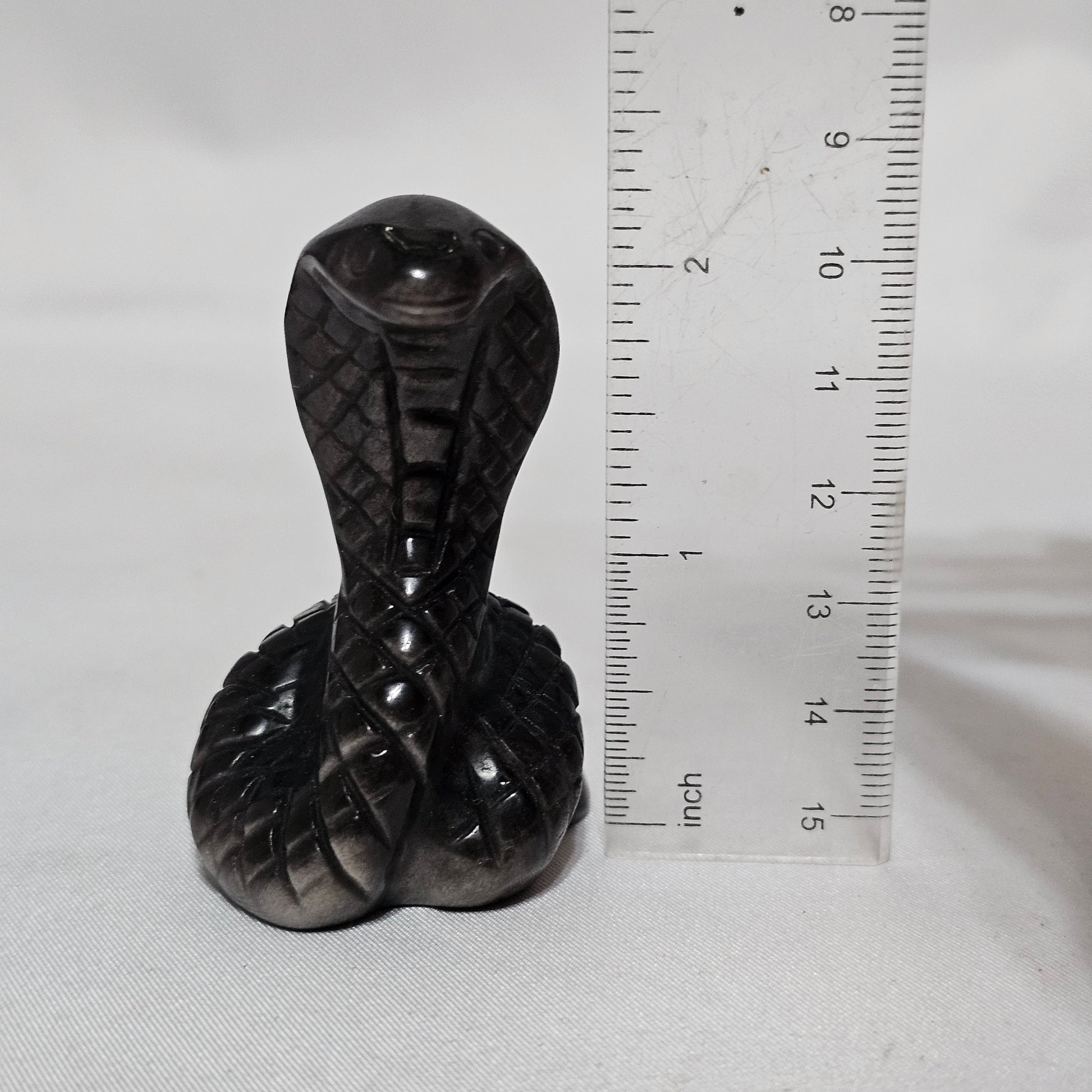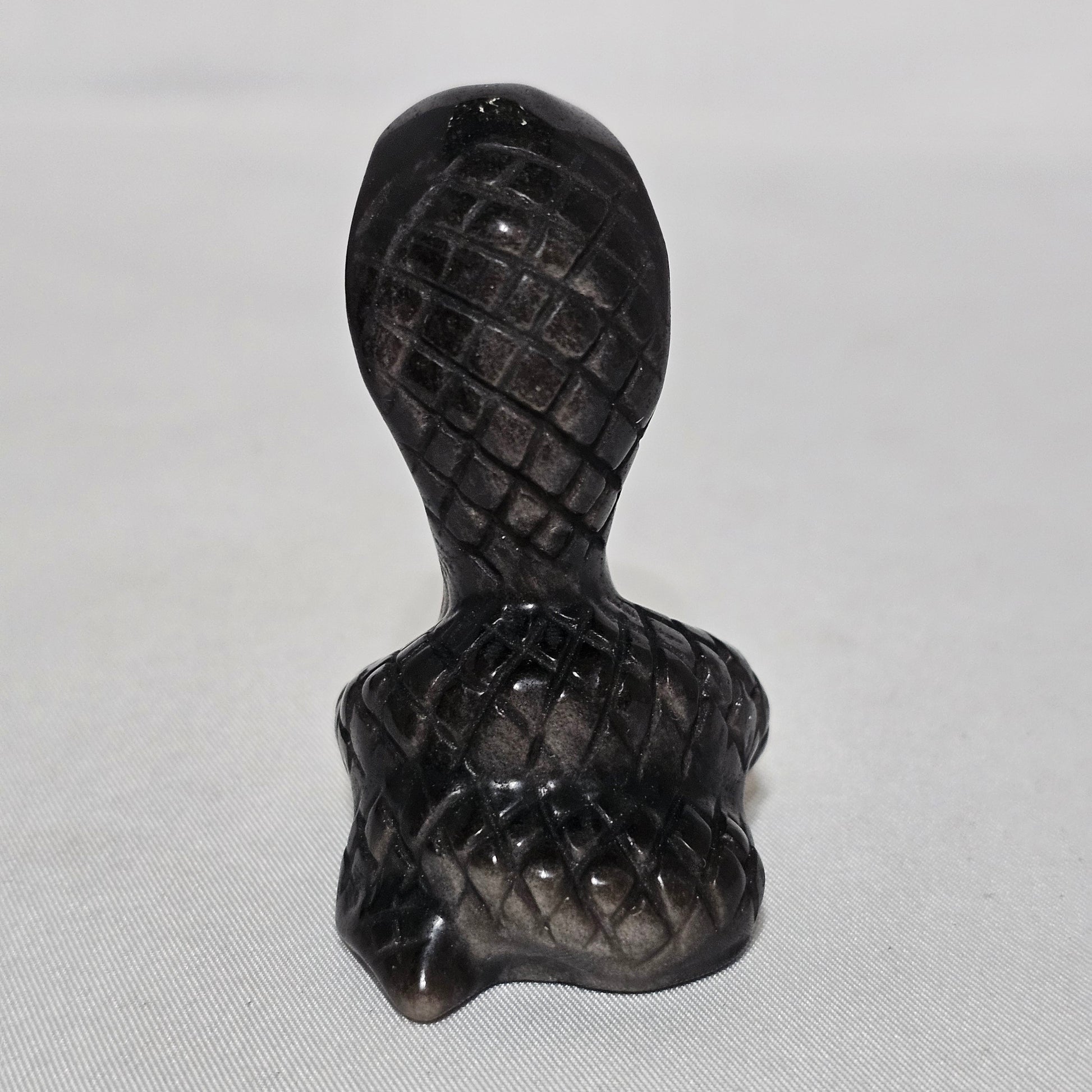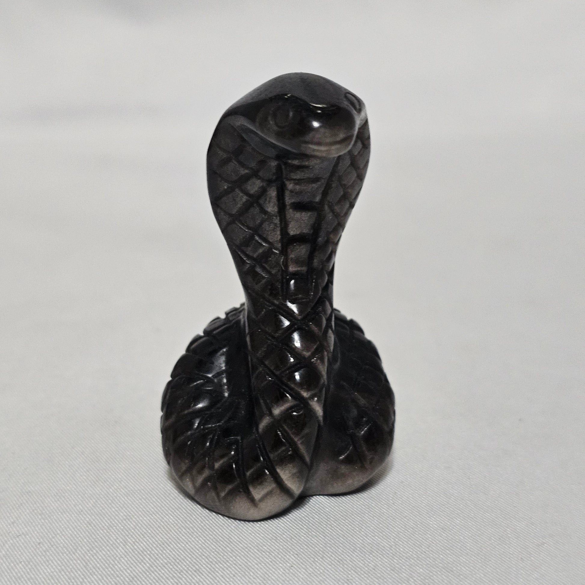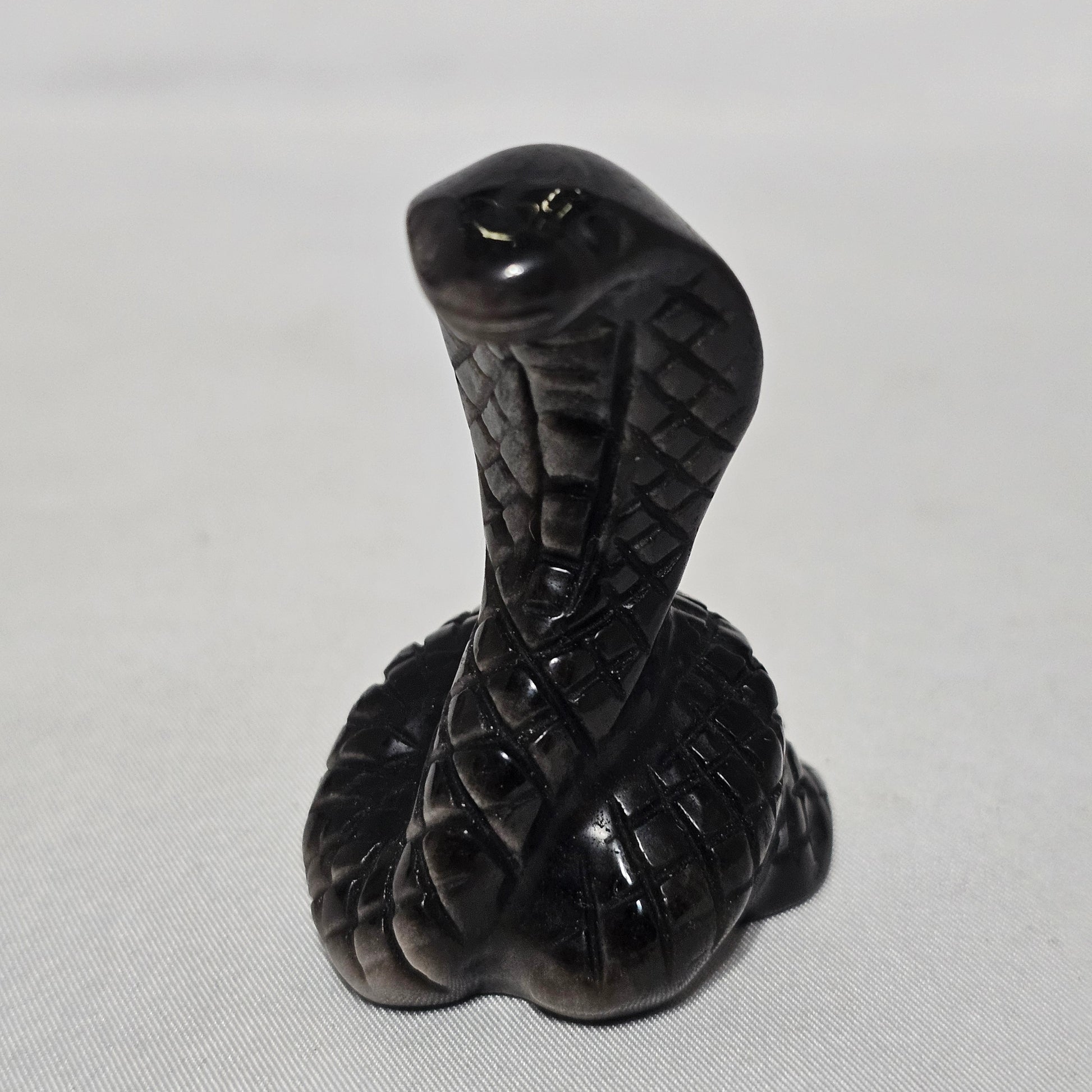 Silver Sheen Obsidian Snake | Protection & Transformation Crystal | Flashing Sheen Carving | Grounding Energy Stone