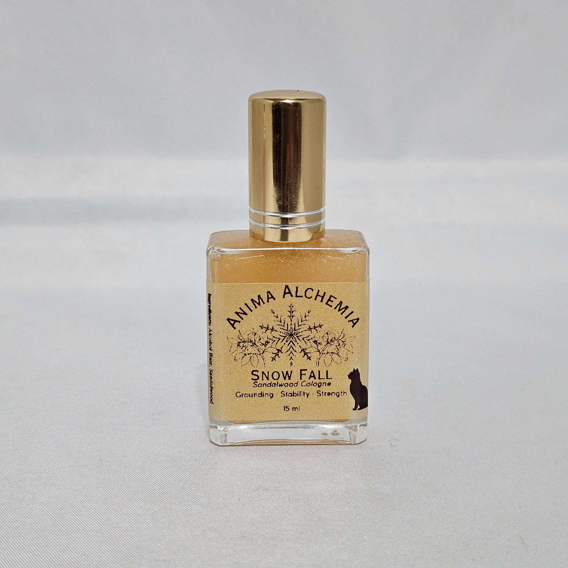 Alcohol Base, Rose Fragrance, Lavender Fragrance, Sandalwood Fragrance (where applicable), Florida Water (Snow White variation only), Fractionated Coconut Oil, Dragon’s Blood Fragrance Oil, Frankincense Essential Oil, Myrrh Essential Oil, Quartz Chips, Cosmetic-grade Mica Powder.